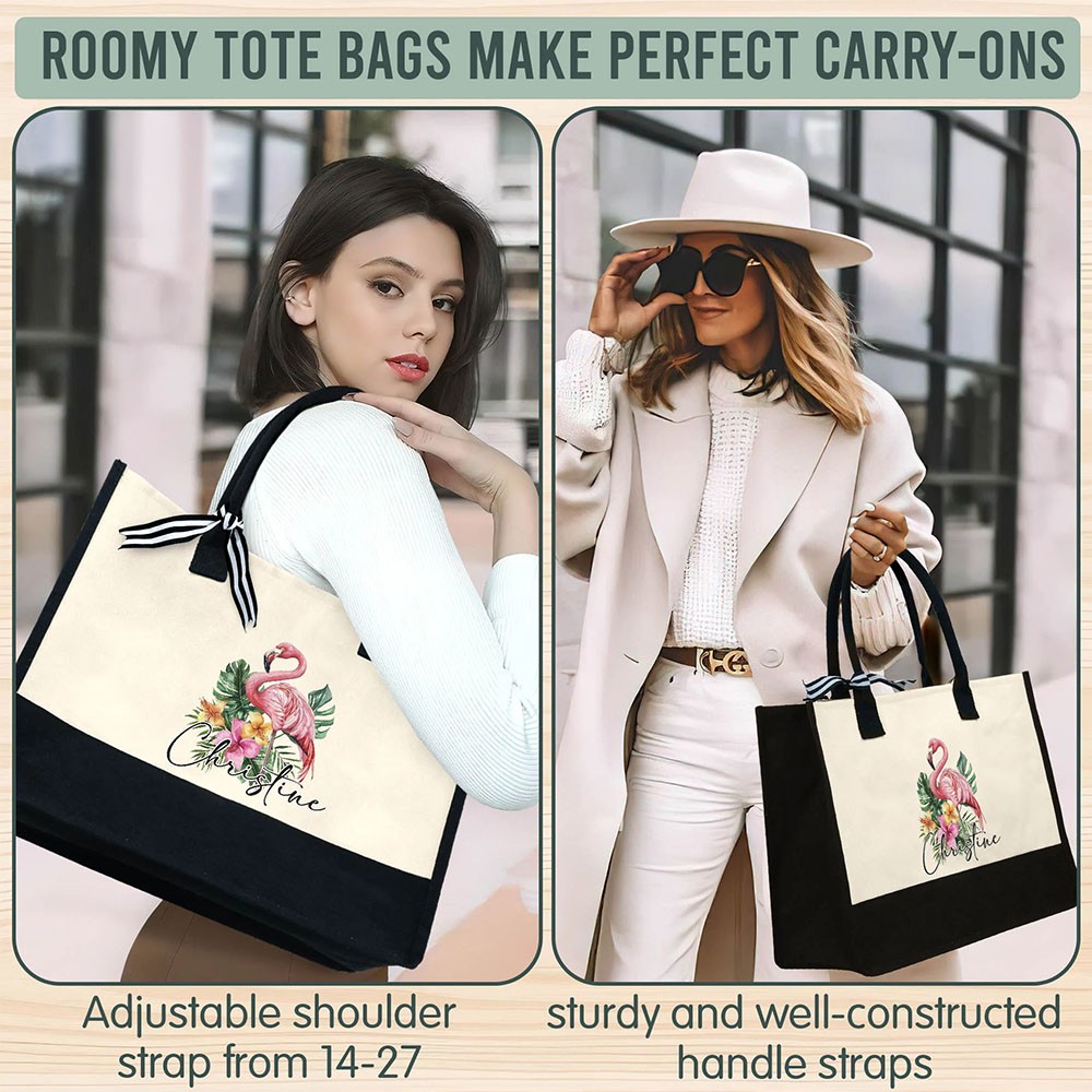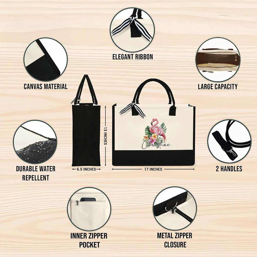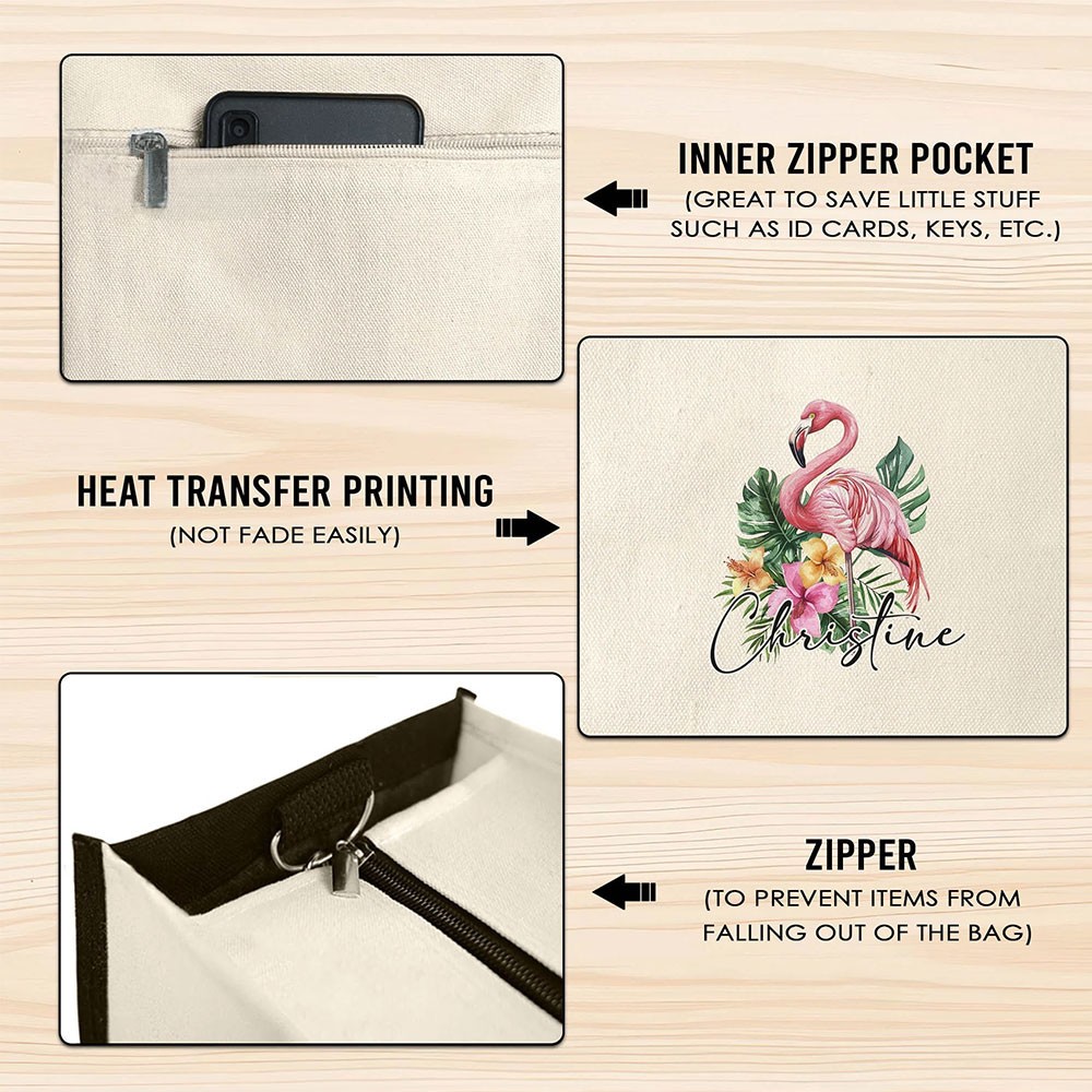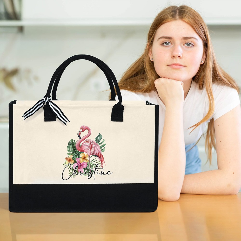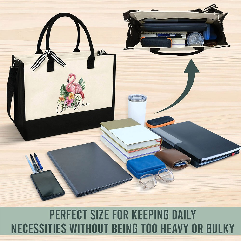 Perfect Gift - Whether given as a Christmas present or a birthday gift, this custom tote bag is a thoughtful and practical gift idea for flamingo lovers, moms, and women with a penchant for stylish accessories. Personalizing it with a custom name enhances the bag's sentimental value and makes it a truly one-of-a-kind accessory.