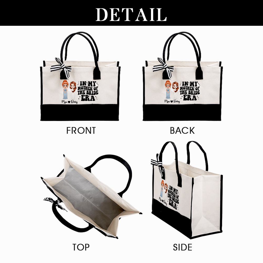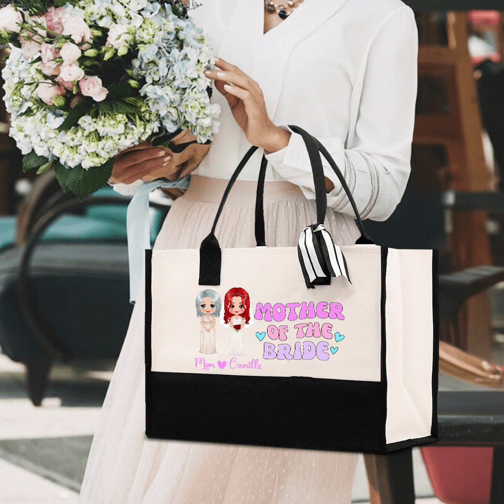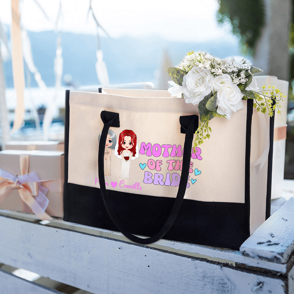 Customizable Design - This charming tote bag features personalized cartoon character images of both the mother of the bride and the bride herself. You can also add their names, making it a unique keepsake that reflects their personalities and relationships.