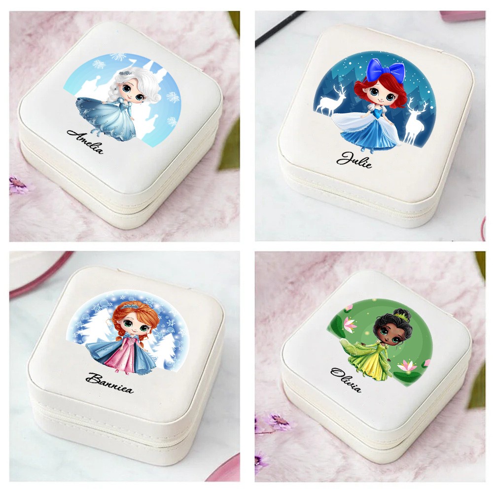 Personalized Design - This jewelry box showcases a charming cartoon fairytale princess design, customized with a name for a magical personal touch. Its dreamy aesthetics make it the perfect keepsake for girls who adore princess stories.