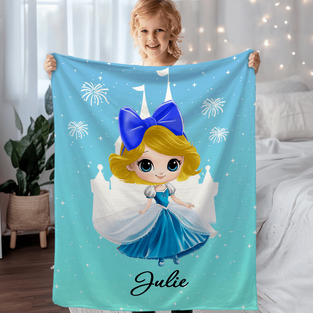 | Style | Personalized Cartoon Fairytale Princess Throw Blanket with Name |