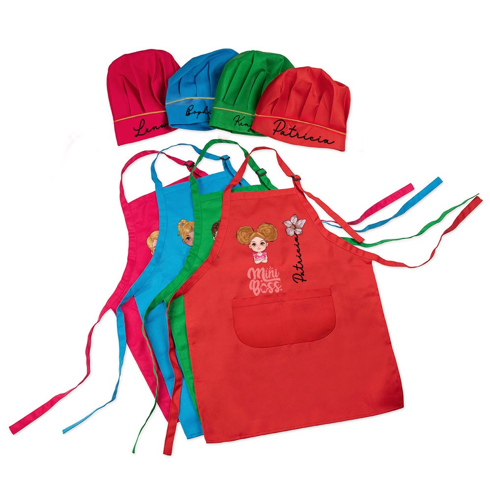 Style Personalized Mini Boss Cartoon Kid Pocket Apron & Chef Hat