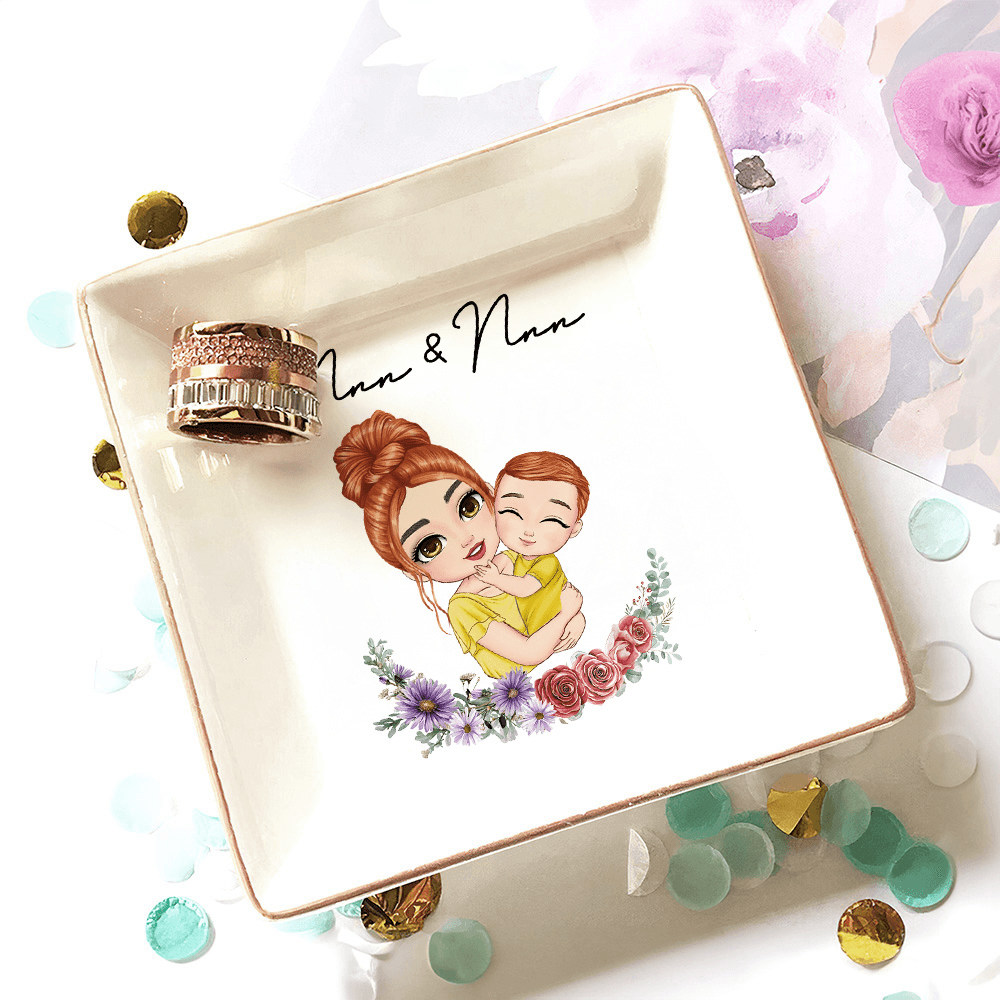 | Style | Personalized Mother & Child Cartoon Character Ceramic Jewelry Dish |