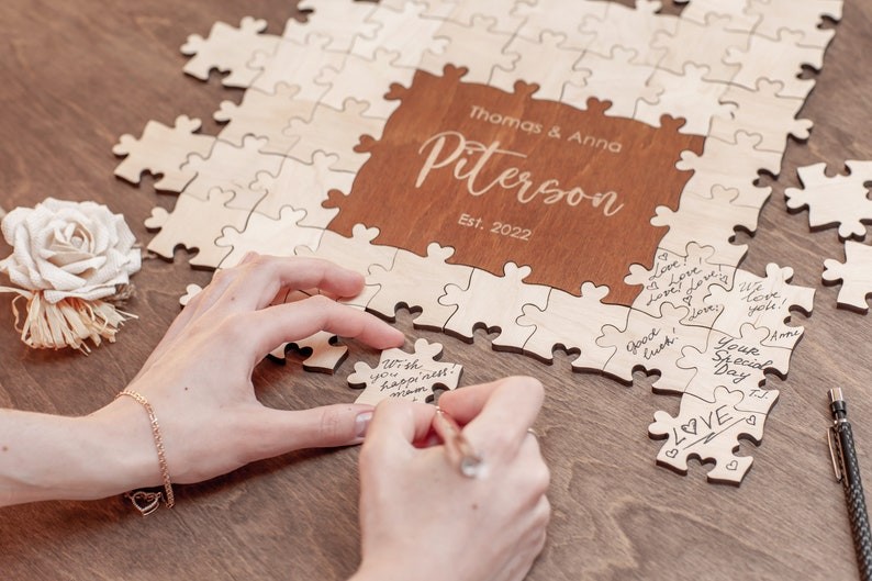 Each puzzle has a core engraved with names and dates to highlight the character of this guestbook.