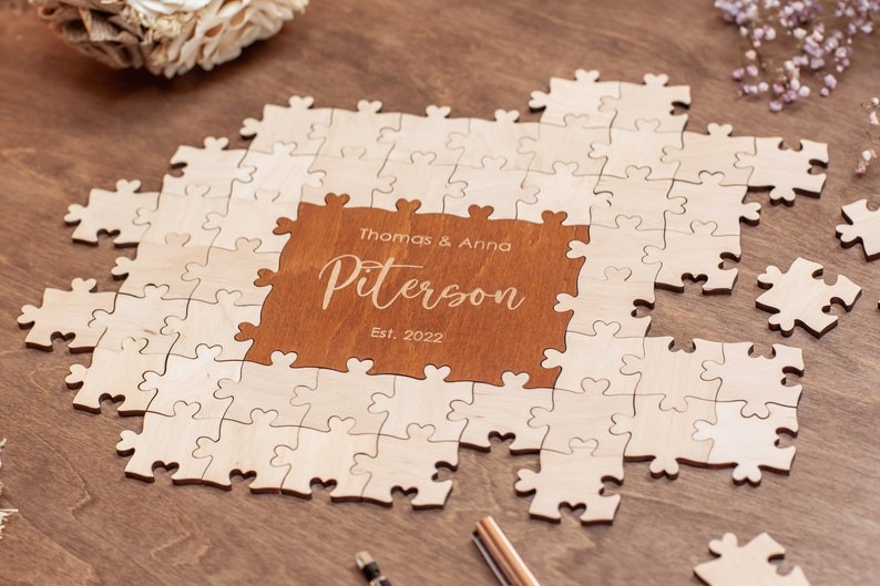 Each piece of this Jigsaw puzzle guest book is beautifully crafted from high-quality wood, making it a lasting keepsake of your special day.