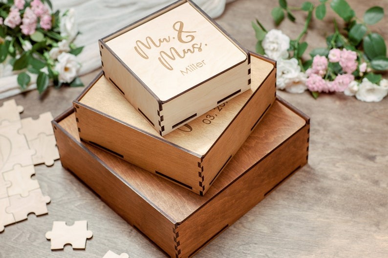 In addition, you can order an additional unique birch plywood box! She makes this rustic guestbook special.